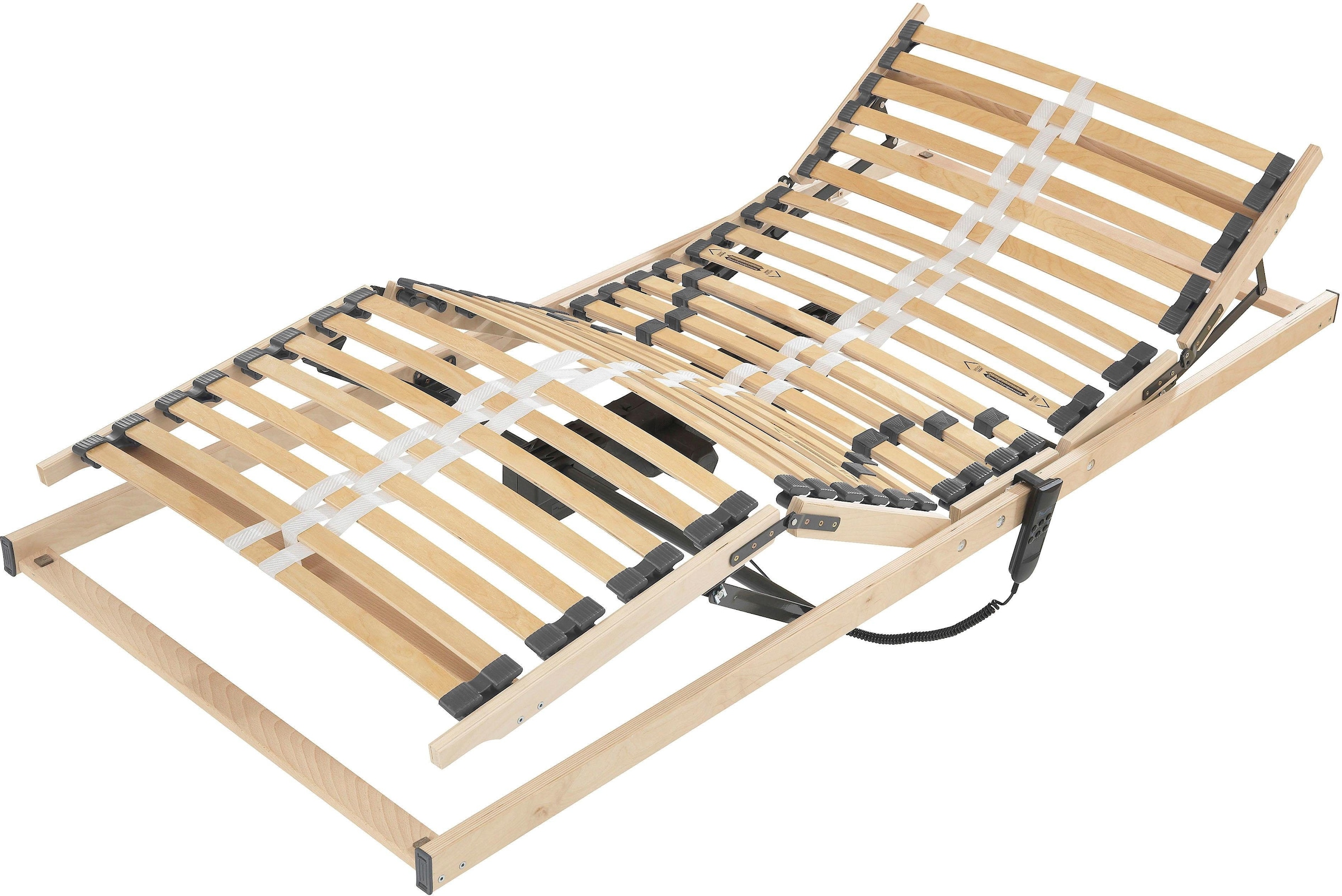Der Lattenrost „3114“ besteht aus 14 Doppellattenelemente und gewährt so eine optimale Druckverteilung mit einer 6-fachen Härtegradverstellung im Beckenbereich. Der 3-fache Mittelgurt sorgt für eine hohe Stabilität und Haltbarkeit. Den Lattenrost gibt es in 3 Varianten: starrer Lattenrost, manuell verstellbar im Kopf- und Fußbereich oder auch motorisch.