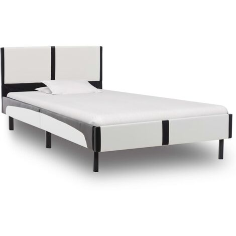 Bettgestell Wei? und Schwarz Kunstleder 90×200 cm