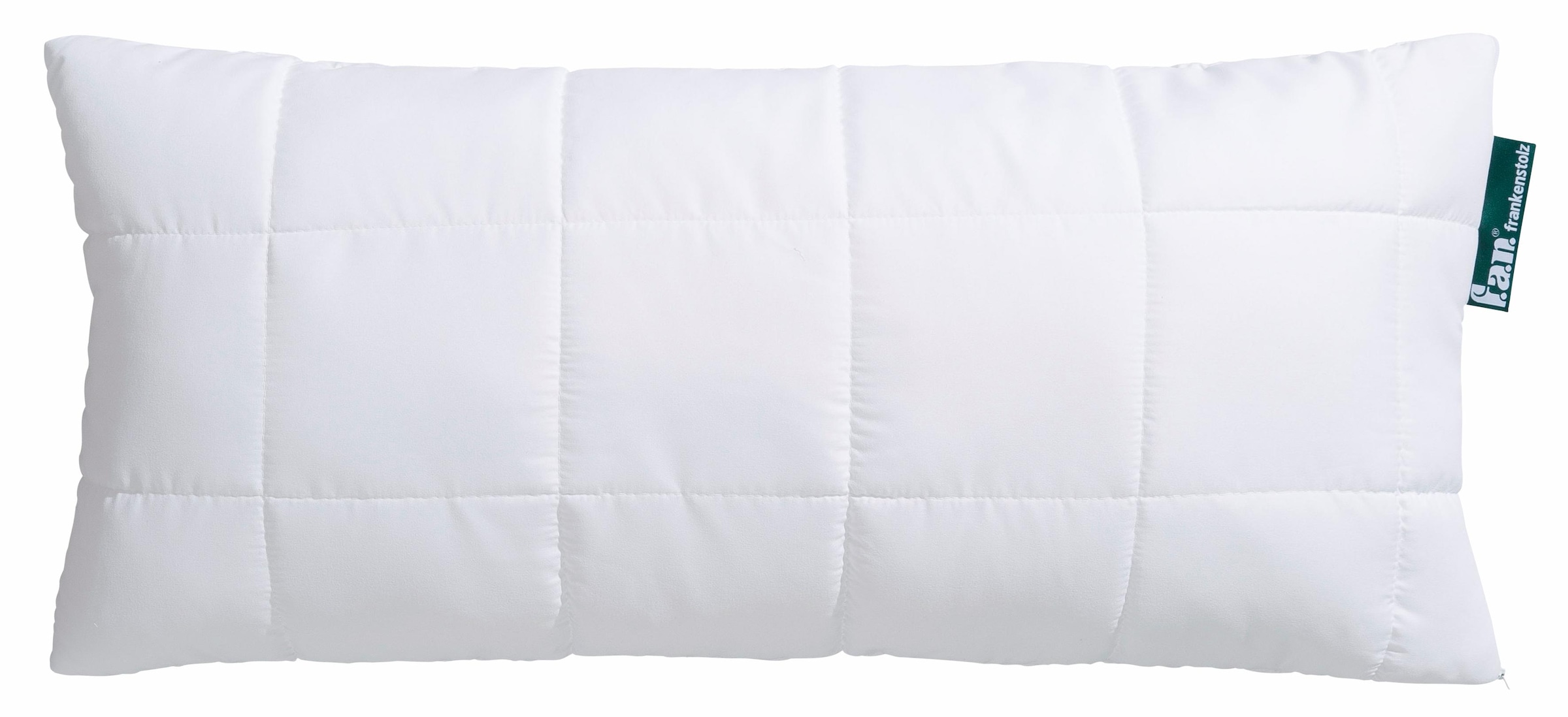 Das Kopfkissen f.a.n. Medisan Sensitive Baumwolle aus dem Hause Frankenstolz zum Spitzenpreis mit softem Bezug aus Baumwolle. Die Naturfaser ist bekannt für Ihre gute Feuchtigkeitsaufnahme, sowie Hautfreundlichkeit. In Kombination mit der speziell für Allergiker und Asthmatiker entwickelten Füllqualität Sensifil™ weiß das Kissen zu überzeugen. Diese Faser wird nachhaltig aus PET-Flaschen hergestellt und leistet somit zusätzlich einen Beitrag für die Welt in der wir leben. Als Zufüllung geben die bauschkräftigen, wie ebenso formstabilen Faserbällchen dem Kopfkissen ein wunderbares Volumen. Damit kann das Kopfkissen dem Schläfer im Kopf- und Nackenbereich eine entlastende Stützkraft bieten, was sich auch positiv auf die Wirbelsäule auswirken kann. Das aufschüttelbare Kopfkissen f.a.n. Medisan Sensitive Baumwolle lässt sich durch den vorhandenen Reißverschluss individuell befüllen. Mit kochfester Eigenschaft bei 95°, sowie der Möglichkeit es im Trockner trocknen zu können, weiß das Kopfkissen auch Menschen mit allerhöchsten Hygieneansprüchen zu überzeugen. Qualität Made in Germany!