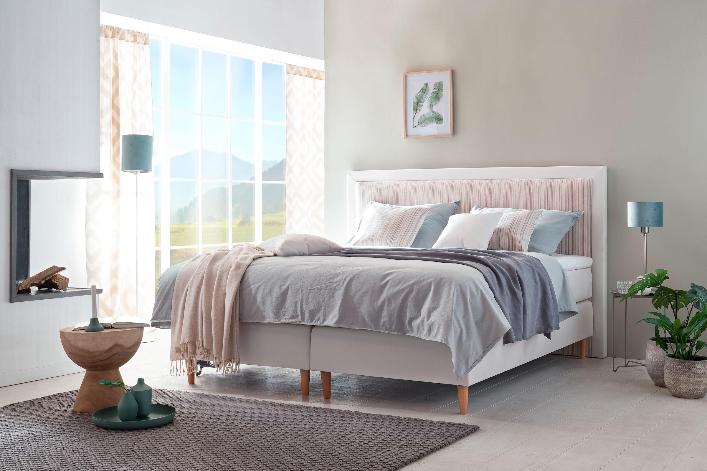 Inklusive 4 Zierkissen. Inklusive Komfortschaum-Topper. Keinerlei Materialien tierischen Ursprungs (vegan). 10 Jahre Herstellergarantie auf den Matratzenfederkern. Komfortliegehöhe 63 cm