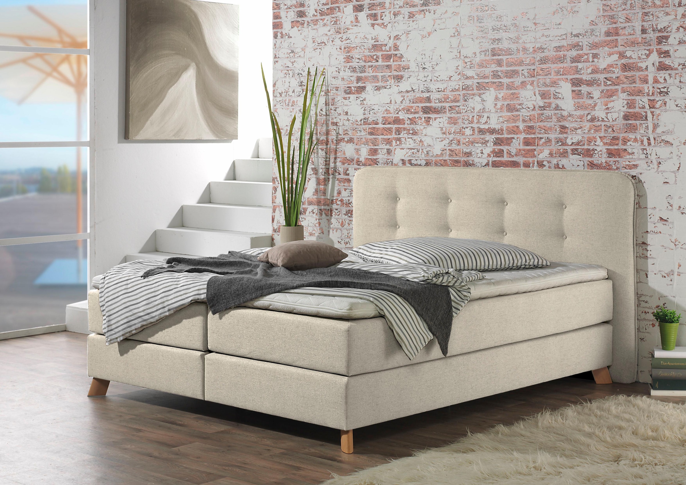 Home affaire Boxspringbett »Cecina«, in 5 Breiten, 3 Ausführungen, 2 Härtegrade, Knopfheftung, Topper