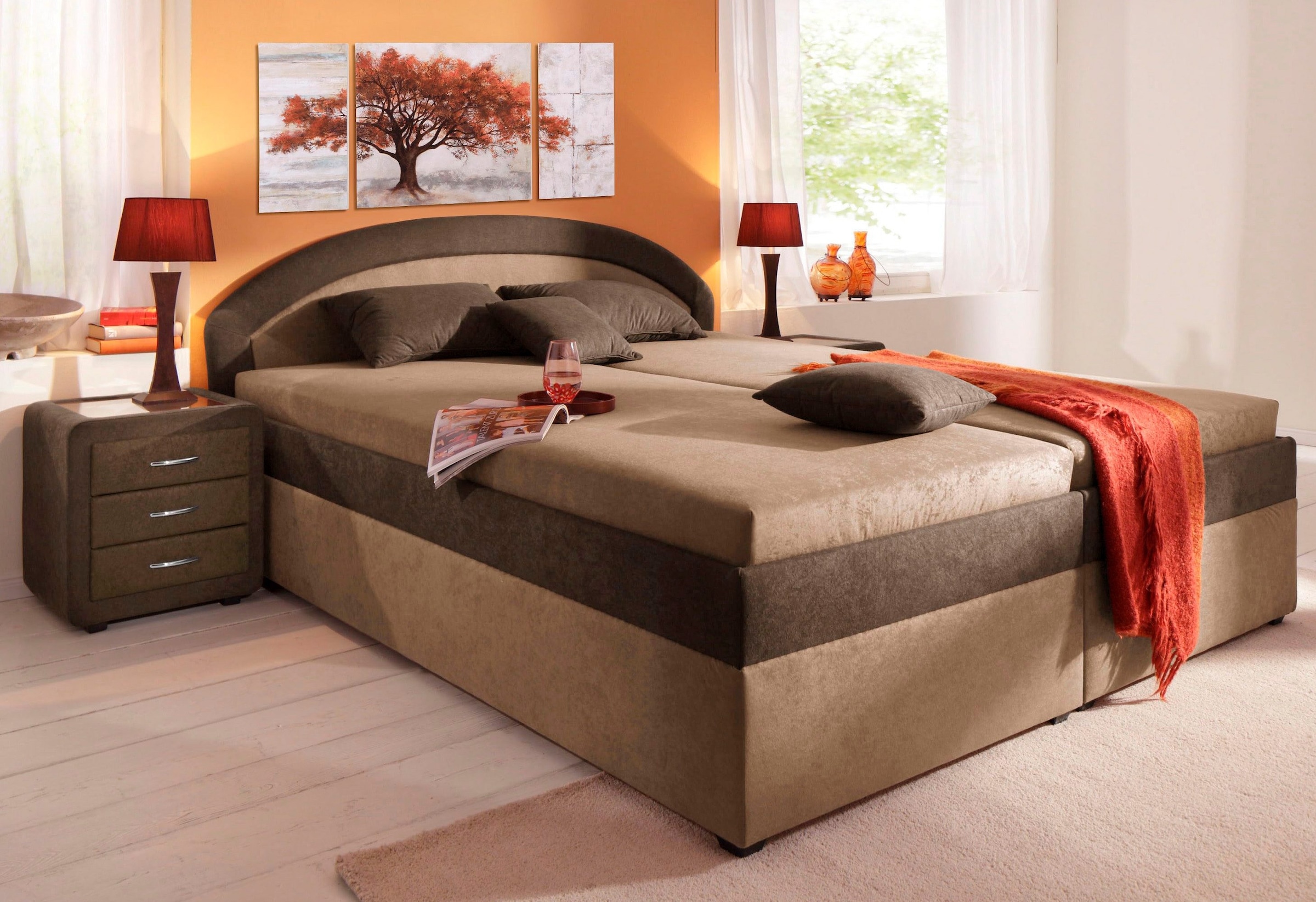 Made in Germany. Wahlweise mit Aufbauservice. Komfortable Liegehöhe von 51 bzw. 53 cm. Bettkasten mit Springaufbeschlag. Maße ca. B. 93/133/153/173/193, L. 208, H. 96 cm