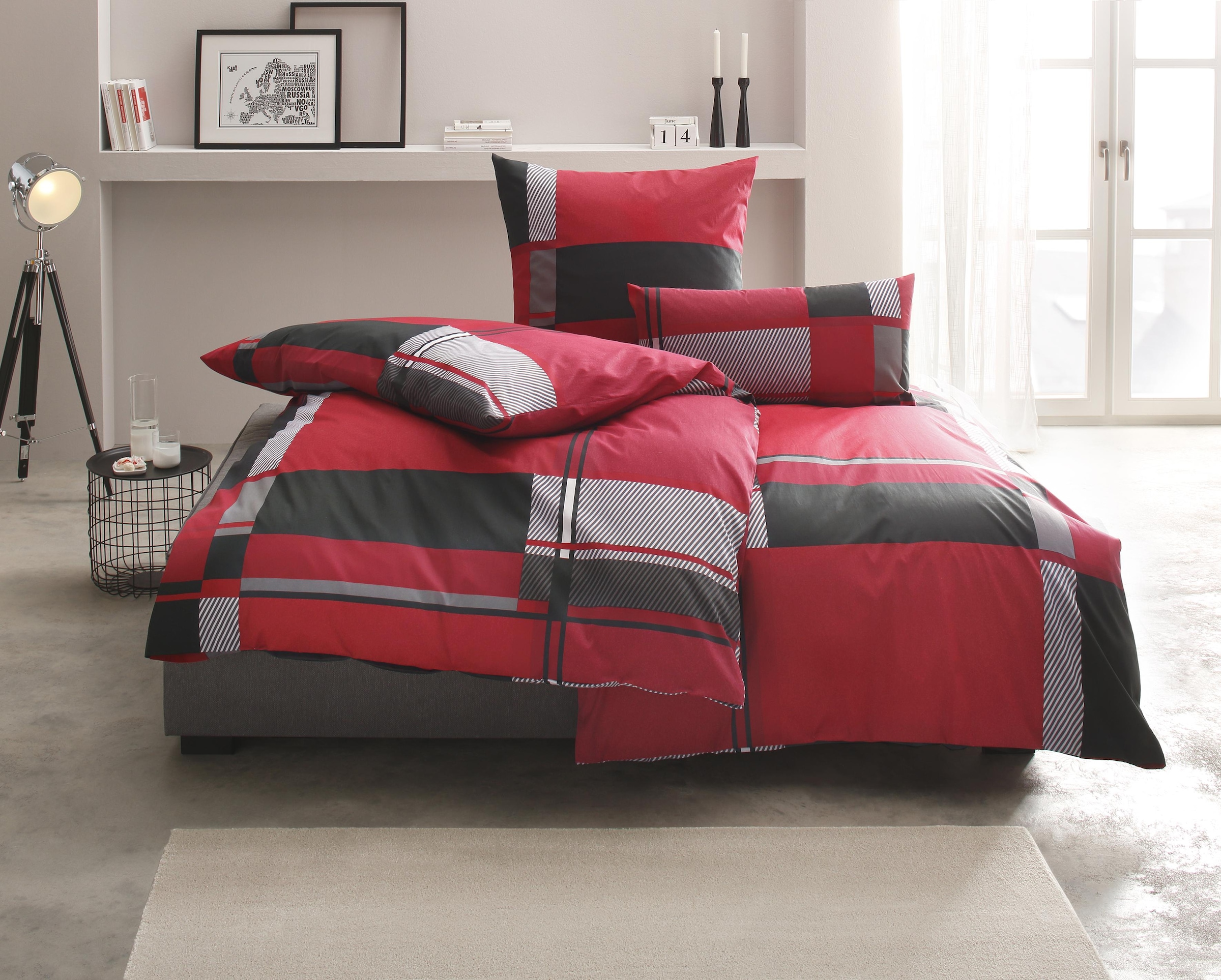 Grafische Bettwäsche »Nina« der Marke my home. In kräftigen Farben und einem unkonventionellen Karo-Design. Praktische Knopfleiste. Maschinenwaschbar.