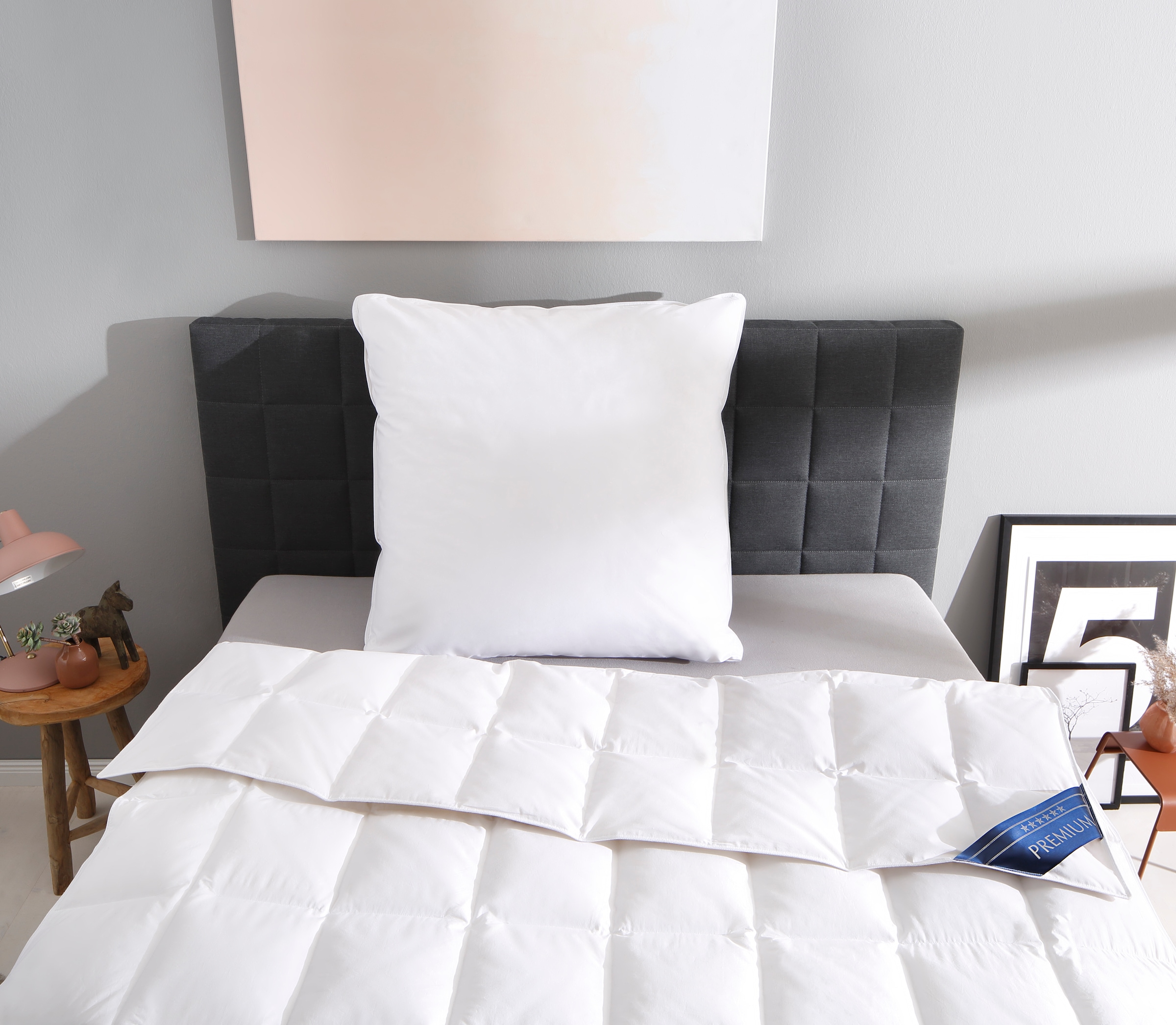 »Premium« Gänsedaunenbettdecke für den anspruchsvollen Schläfer. Diese Daunenbettdecken überzeugen durch die Kombination einer weichen, anschmiegsamen Hülle aus Baumwolle und einer Füllung aus hochwertigen Gänsedaunen und -federn. Die atmungsaktive Baumwoll-Hülle in Kombination mit den feuchtigskeitsregulierenden Eigenschaften von Gänsedaunen und -federn sorgt für ein angenehmes und erholsames Schlafklima. Alle Produkte sind Öko-Tex zertifiziert und belegen damit, dass beim Gebrauch der Bettwaren keine gesundheitlichen Gefahren auftreten. Durch die zusätzliche NOMITE-Auszeichnung ist jede Bettdecke bedenkenlos auch für Hausstauballergiker geeignet.