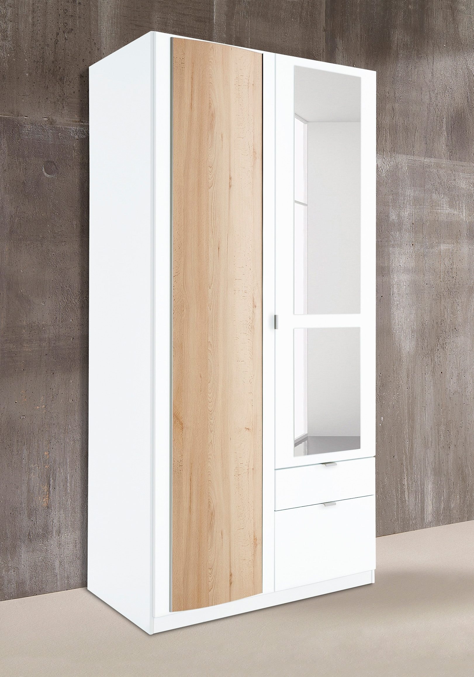 Ein Hingucker im Ankleideraum ist dieser sehr schöne und stattliche Kleiderschrank, der in verschiedenen Farbvarianten und Breiten geliefert werden kann. Damit lässt sich das Schlafzimmermöbel in das jeweilige Wohnkonzept mühelos einfügen und bleibt dabei immer ein Blickfang. Die gerundeten Elemente auf den Außentüren verleihen dem Schrank eine besonders individuelle Optik, die durch die Spiegelelemente auf den Innentüren verstärkt wird.