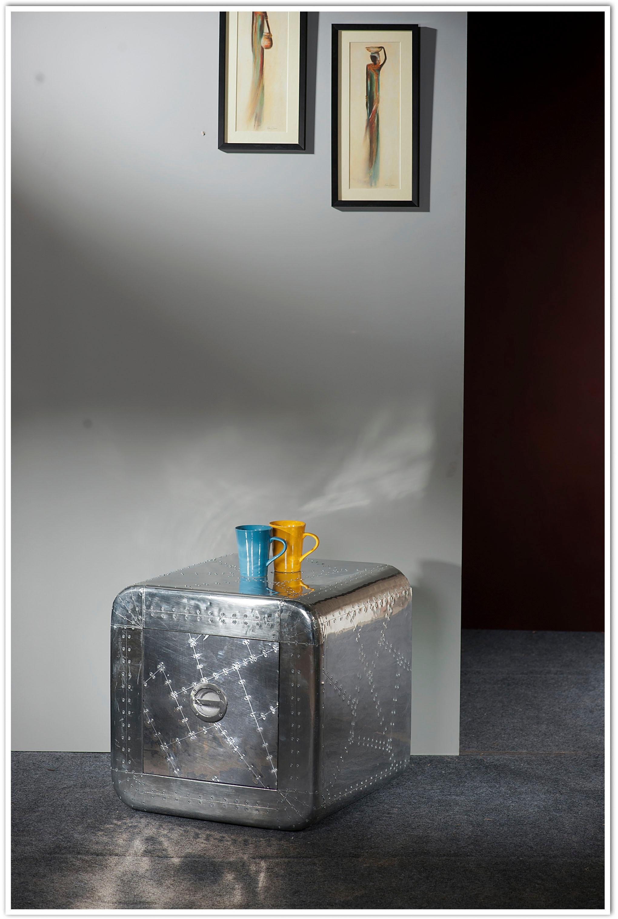 1 Schubkasten. Extravagantes Design und hochwertige Verarbeitung. Von Hand mit Alu beschlagen. Maße (B/T/H): 50/50/50 cm