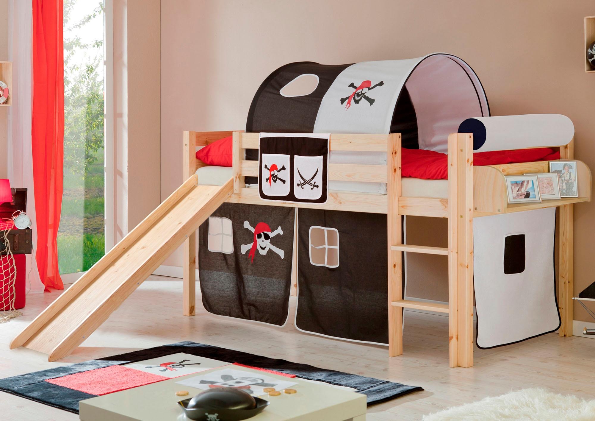 Ticaa Hochbett »Manuel«, mit Rollrost und Textil-Set wahlweise mit Matratze, Kiefer