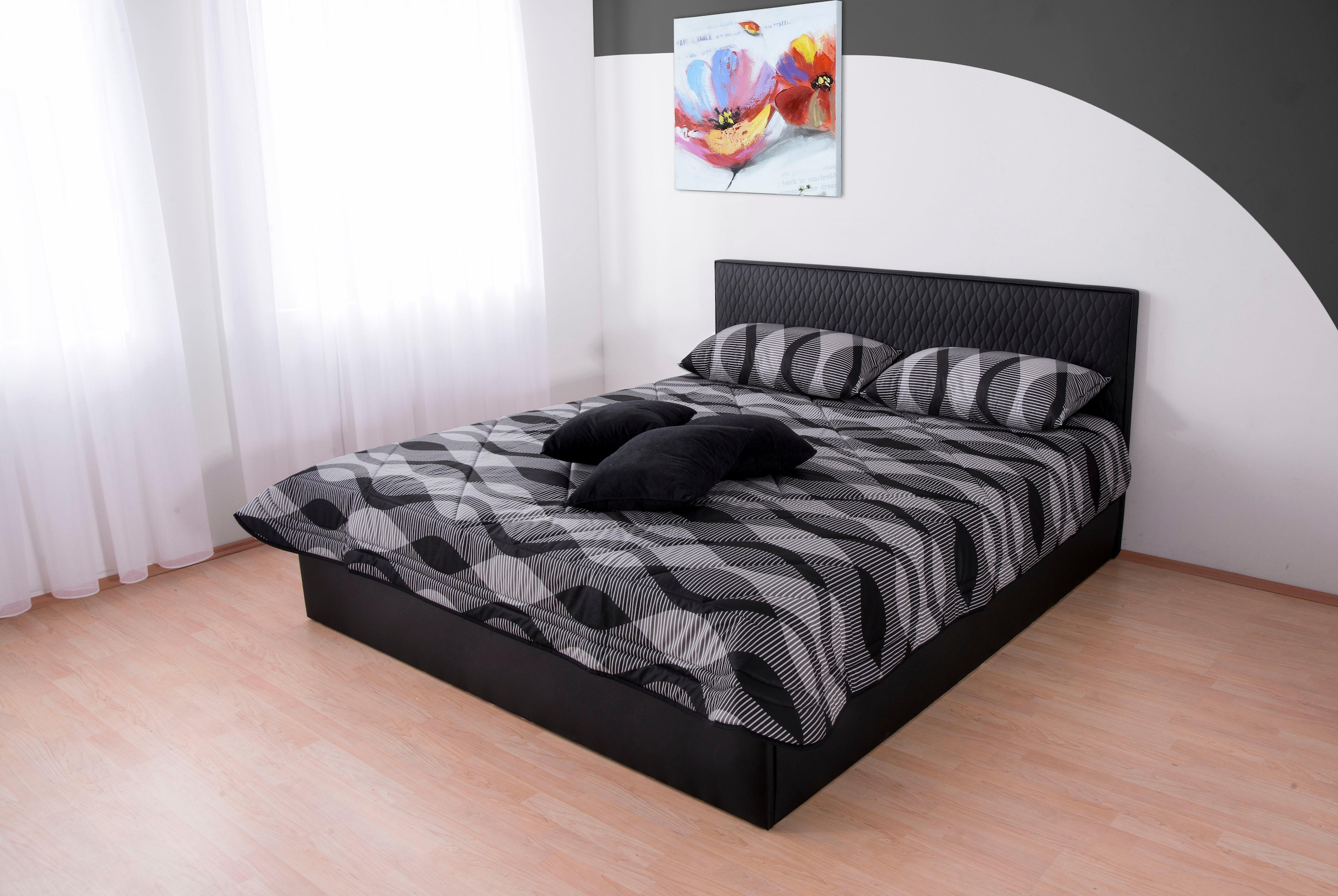 Ausführung mit Matratze enthält Bettkasten. Wahlweise mit Lattenrost und Matratze. In Komfortliegehöhe erhältlich. Kopfteilhöhe 98 cm. Ohne Tagesdecke und Kissen