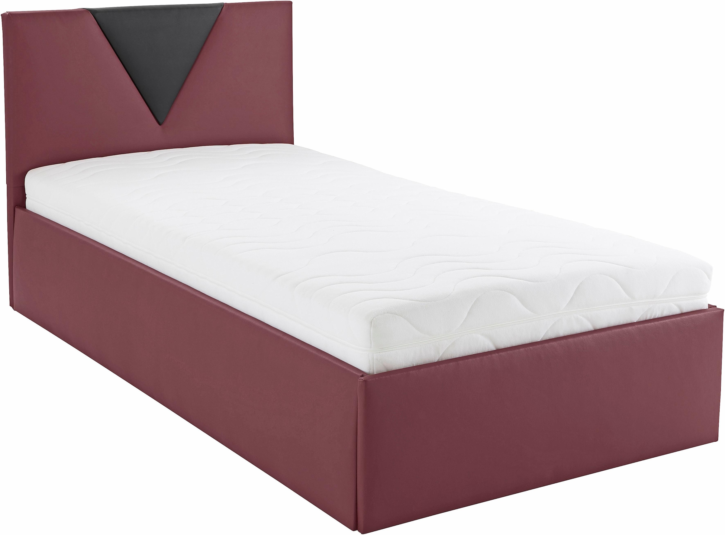Bezug aus Kunstleder. Ausführung mit Matratze enthält Bettkasten. Kopfteilhöhe 98 cm. Made in Germany