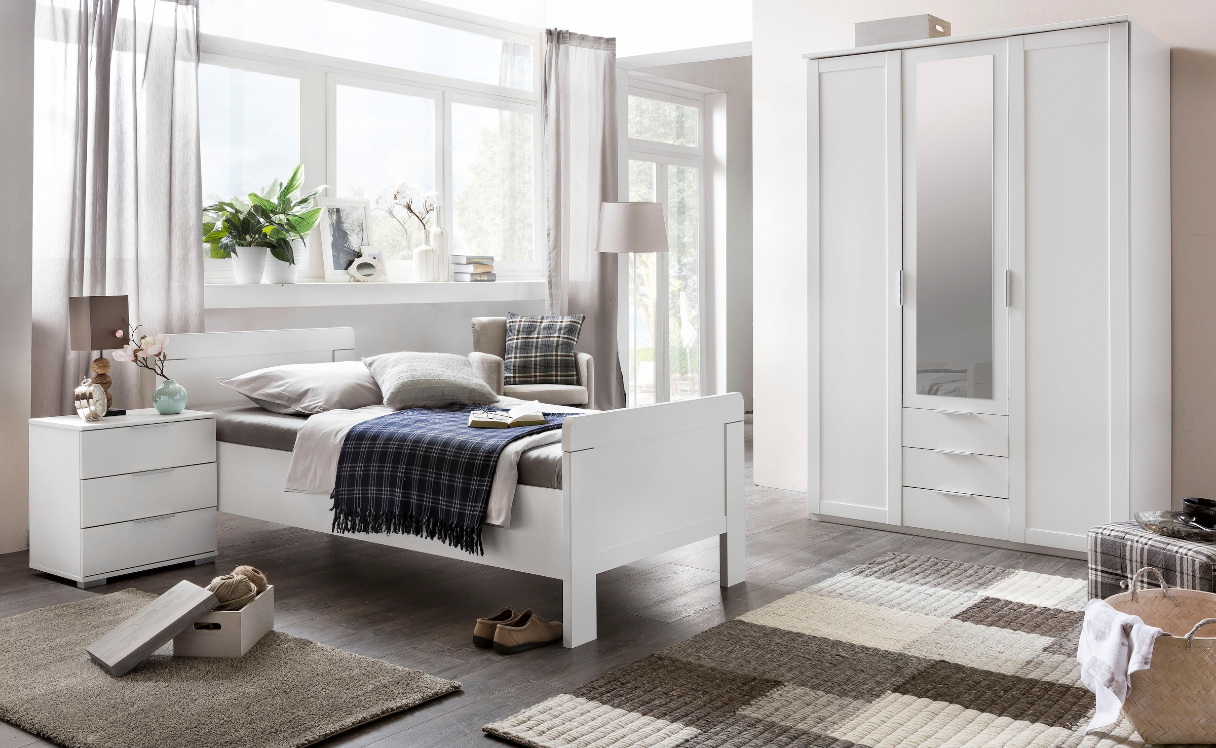 Mittig mit Spiegeltür. 3 praktische Schubkästen. Außentüren mit Aufleistungen. Tiefe/Höhe: 58/212 cm