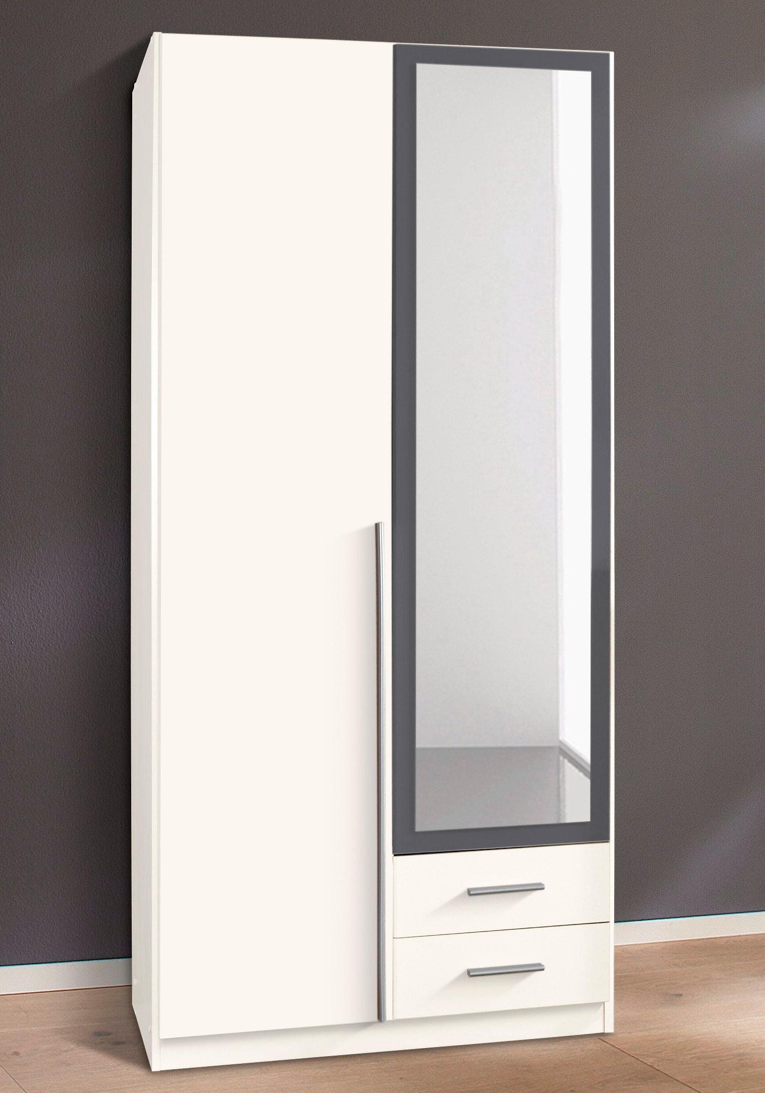 Zeitloser Hingucker mit innovativem Innenleben: In abwechslungsreichen Farbkombinationen verbreitet dieser Kleiderschrank eine elegante Wohnatmosphäre im Schlafzimmer. Türen und Korpus sind mit farblichen Absetzungen herausgearbeitet und treten als optischer Eyecatcher in Erscheinung. Alufarbene Stangengriffe komplettieren die stilgewandte Optik dieses Schlafzimmermöbels. Funktionale Merkmale stehen im Vordergrund, so zeichnet sich der Kleiderschrank vorwiegend durch viel Stauraum aus. Mit praktischen Schubkästen in der Mitte bleibt ausreichend Platz für Kleidung. Darüber hinaus gibt es Kleiderstangen für Bekleidung, die nicht liegend aufbewahrt werden sollte. Mit edlen silberfarbenen Stangengriffen auf den Außentüren, Kunststoff. Jeweils mit 2 praktischen Schubkästen, darüber Spiegel.