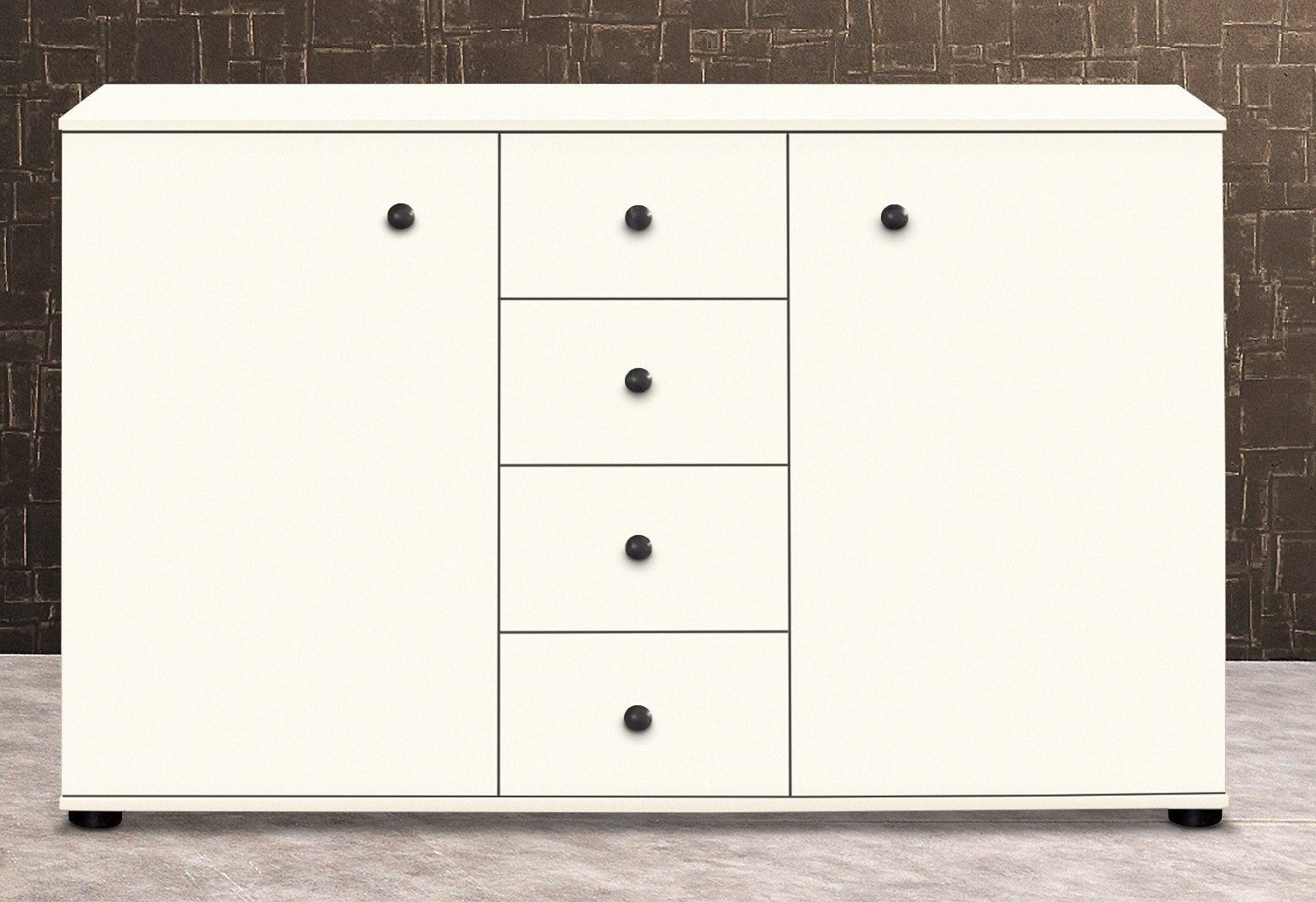 Zeitlose Kommode. Mit 2 Türen und 4 Schubkästen. Runde Griffe aus Metall. In 2 Farben. Breite/Tiefe/Höhe: 130/41/83 cm